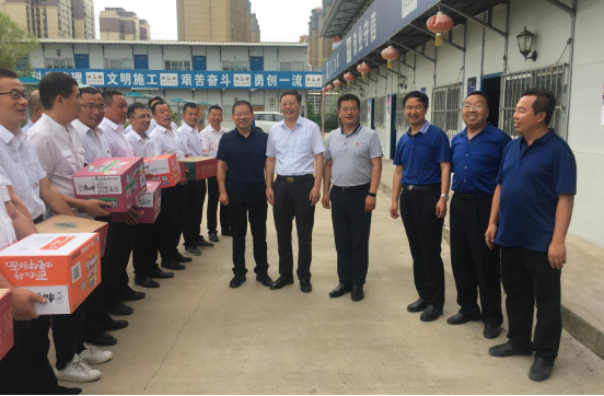 8月9日上午,延安大學(xué)校長張金鎖,副校長楊偉宏,校辦主任劉述進(jìn)、工會主席白澤生一行到延安大學(xué)新校區(qū)項(xiàng)目慰問一線職工,陜建十三公司董事長、總經(jīng)理卜國平一同慰問,延大校辦、工會及新校區(qū)辦公室相關(guān)負(fù)責(zé)人參加慰問活動。