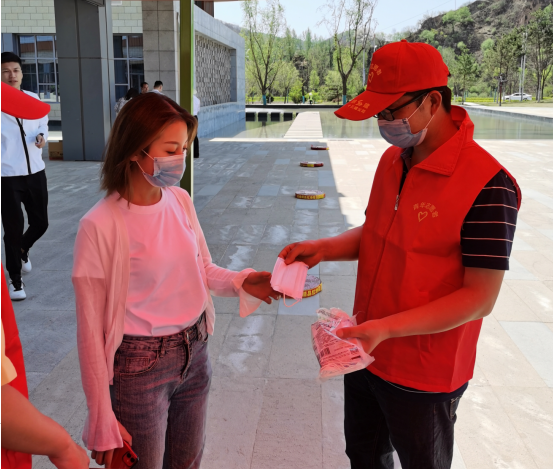 協助景區(qū)衛(wèi)生部門對游客進行測溫、消毒,提供口罩。