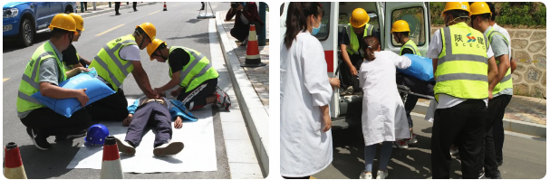 活動現(xiàn)場就有限空間發(fā)生安全事故后的標(biāo)準(zhǔn)化救援程序進(jìn)行了實(shí)戰(zhàn)演練。