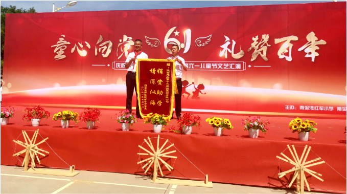 6月1日,陜建十三建集團(tuán)受邀參加南泥灣紅軍小學(xué)、南泥灣鎮(zhèn)中心幼兒園聯(lián)合舉辦的“童心向黨·禮贊百年”慶六一活動,南泥灣中心小學(xué)校長賀延軍向集團(tuán)送上了一面寫著“捐資助學(xué)·情深似?!钡腻\旗。