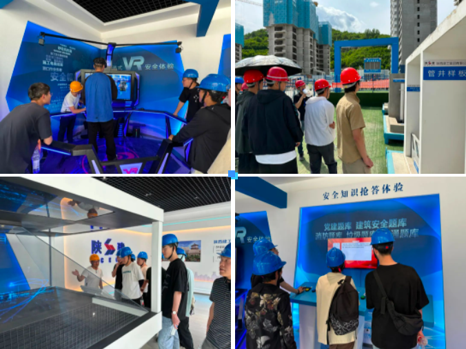 學(xué)生們參觀了智慧科技館,觀看了全息投影,體驗(yàn)了VR實(shí)景模擬,了解智慧工地平臺運(yùn)行情況等。在樣板展示區(qū),項(xiàng)目管理人員介紹了裝配式在項(xiàng)目的應(yīng)用情況,對疊合板、預(yù)制樓梯、預(yù)制陽臺的施工進(jìn)行了詳細(xì)介紹。同時(shí),部分學(xué)生還進(jìn)行了安全體驗(yàn)。